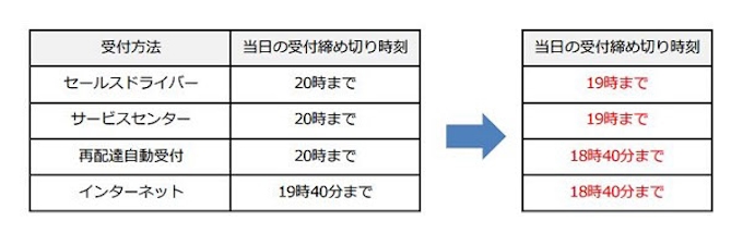 再配達受付締切時間変更18 09ヤマト運輸