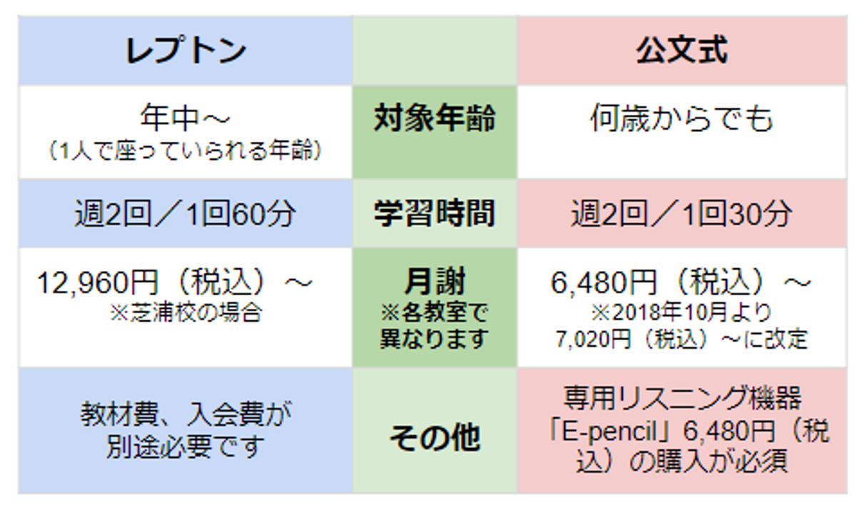 子ども英語教室lepton レプトン と公文式の違いは 料金や特徴を徹底比較 子供の習い事の体験申込はコドモブースター